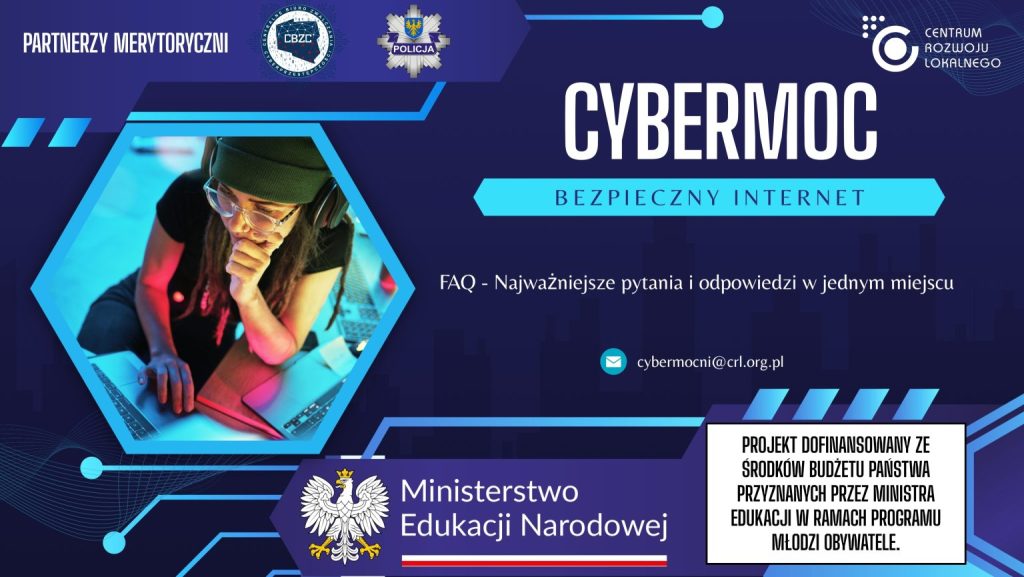 W listopadzie nasza szkoła dołączyła do ogólnopolskiego projektu „CyberMoc – Bezpieczny Internet”, realizowanego przez Centrum Rozwoju Lokalnego we współpracy z Centralnym Biurem Zwalczania Cyberprzestępczości. To program edukacyjno-profilaktyczny, którego celem jest zwiększenie świadomości młodych ludzi w zakresie bezpiecznego korzystania z Internetu.
