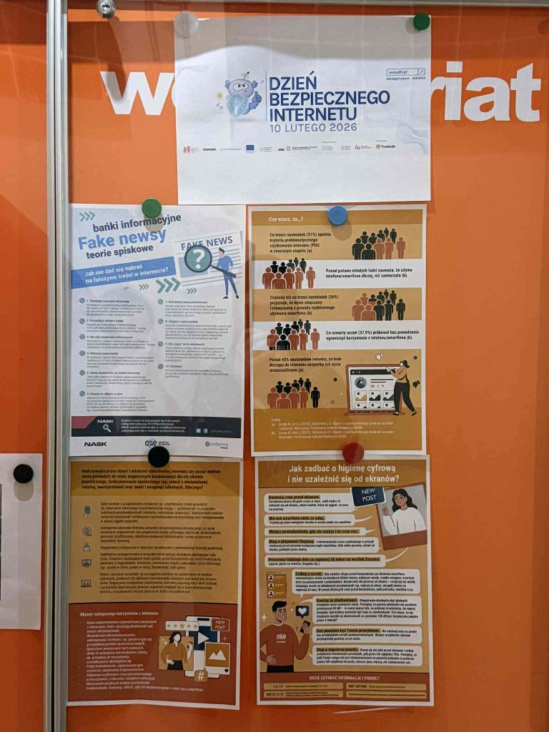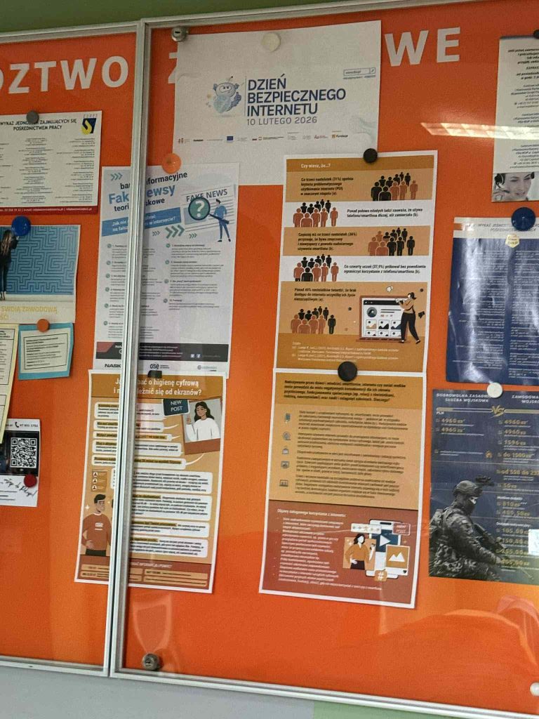 Z okazji Dnia Bezpiecznego Internetu w naszej szkole podjęto działania mające na celu zwiększenie świadomości uczniów w zakresie bezpiecznego i odpowiedzialnego korzystania z sieci. Na terenie szkoły wywieszone zostały plakaty informacyjne dotyczące zagadnień związanych z fake newsami oraz nadużywaniem Internetu i urządzeń mobilnych. Dodatkowo informacje poruszające tę tematykę zostały przesłane na szkolne adresy e-mail.