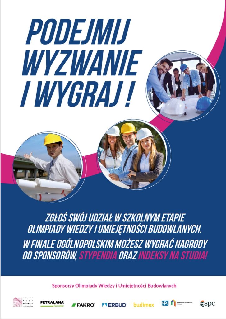We wtorek 25.11.2025 r. o godz. 9,00 odbędą się szkolne eliminacje do Olimpiady Wiedzy i Umiejętności Budowlanych.