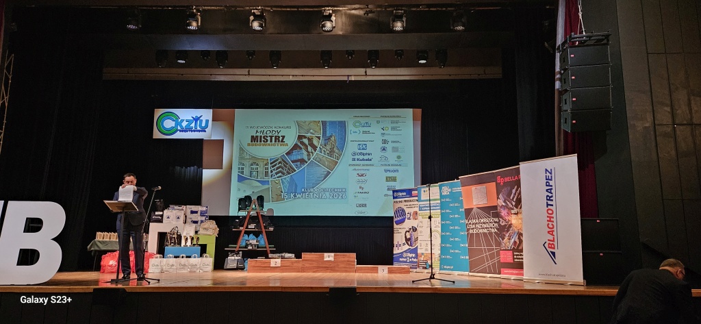 15.04.2026 r. w Częstochowie odbyła się IX Edycja Wojewódzkiego Konkursu ,,Młody Mistrz Budownictwa”. Konkurs jest przeznaczony dla uczniów szkół województwa śląskiego, które prowadzą kształcenie w zawodzie technik budownictwa. W tym roku rywalizowało ze sobą czternaście drużyn trzyosobowych, które musiały wykazać się wiedzą teoretyczną z zakresu budownictwa oraz umiejętnościami zawodowymi podczas wykonywania zadania praktycznego.