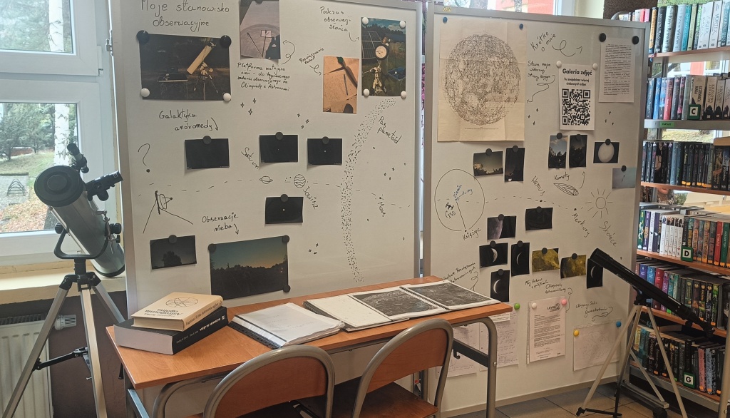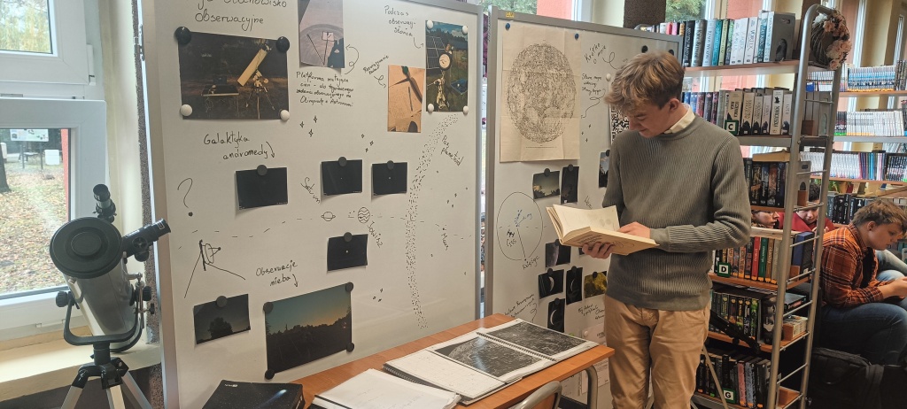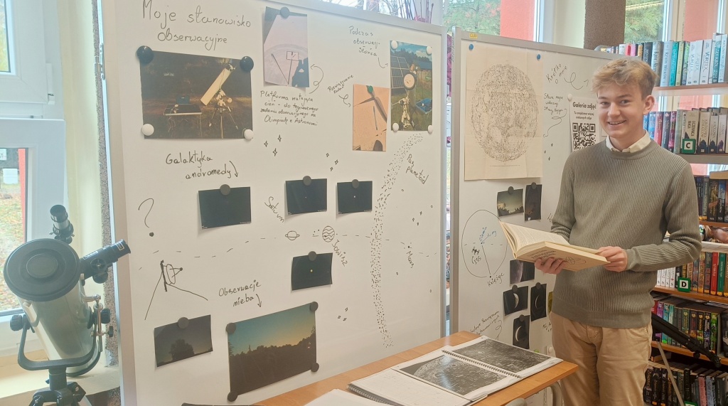 W ramach bibliotecznego cyklu „Pasjoteka”, w którym prezentujemy zainteresowania i talenty uczniów, zaprosiliśmy na wyjątkową, pierwszą o charakterze naukowym wystawę – poświęconą astronomii. Jej bohaterem jest Bartek, młody pasjonat, który już po raz drugi bierze udział w Ogólnopolskiej Olimpiadzie Astronomicznej.