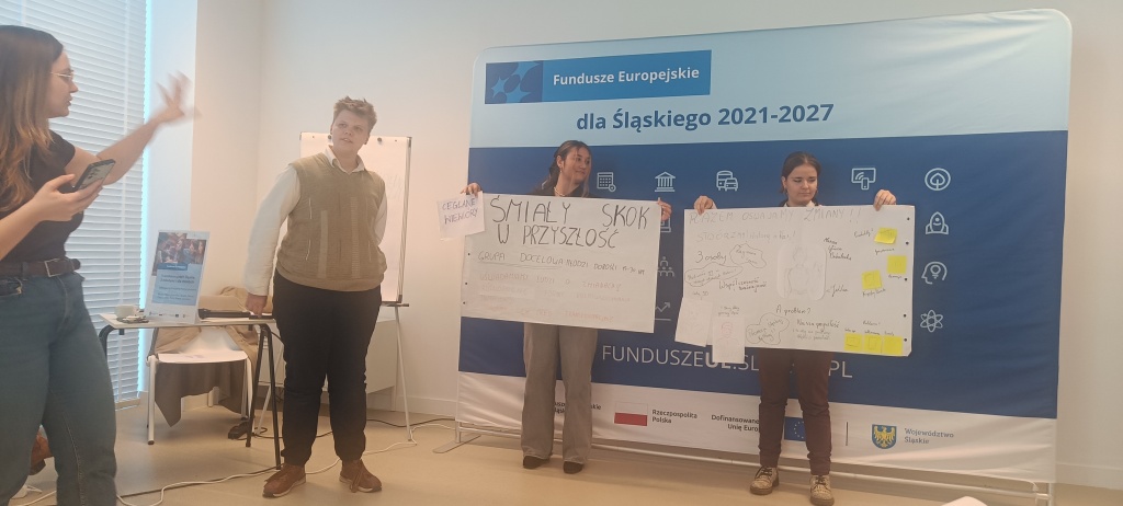 Podczas zajęć młodzież miała okazję wcielić się w rolę zespołu kreatywnego agencji reklamowej, przygotowując autorską kampanię społeczną dotyczącą transformacji regionu, ekologii i tożsamości Śląska. Nasze reprezentantki opracowały projekt zatytułowany „Śmiały skok w przyszłość”, którego celem było oswojenie lęku młodych dorosłych przed zmianami.