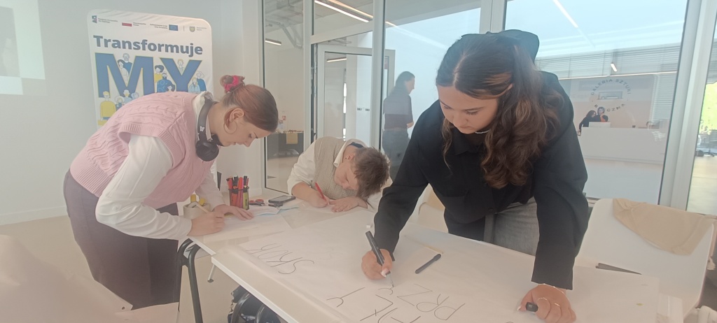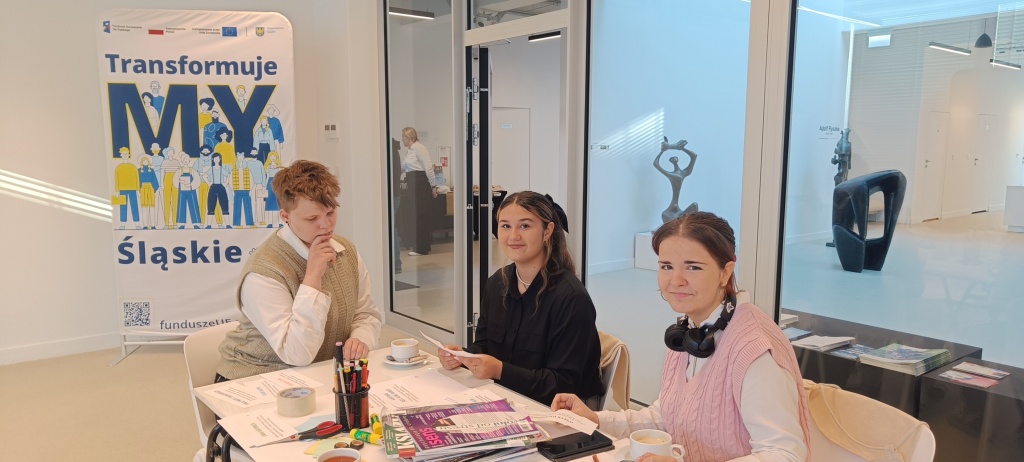 4 listopada nasze uczennice — Sandra Matula, Małgorzata Pakuła i Edyta Warzecha — wzięły udział w wyjątkowych warsztatach edukacyjno-kreatywnych „TransformujeMY Śląskie. Z młodymi i dla młodych”, które odbyły się w Galerii Sztuki Rzeczna w Rybniku. Wydarzenie zorganizował Urząd Marszałkowski Województwa Śląskiego, a uczestnicy od rana rozpoczęli intensywny dzień pełen inspiracji i twórczej energii.
