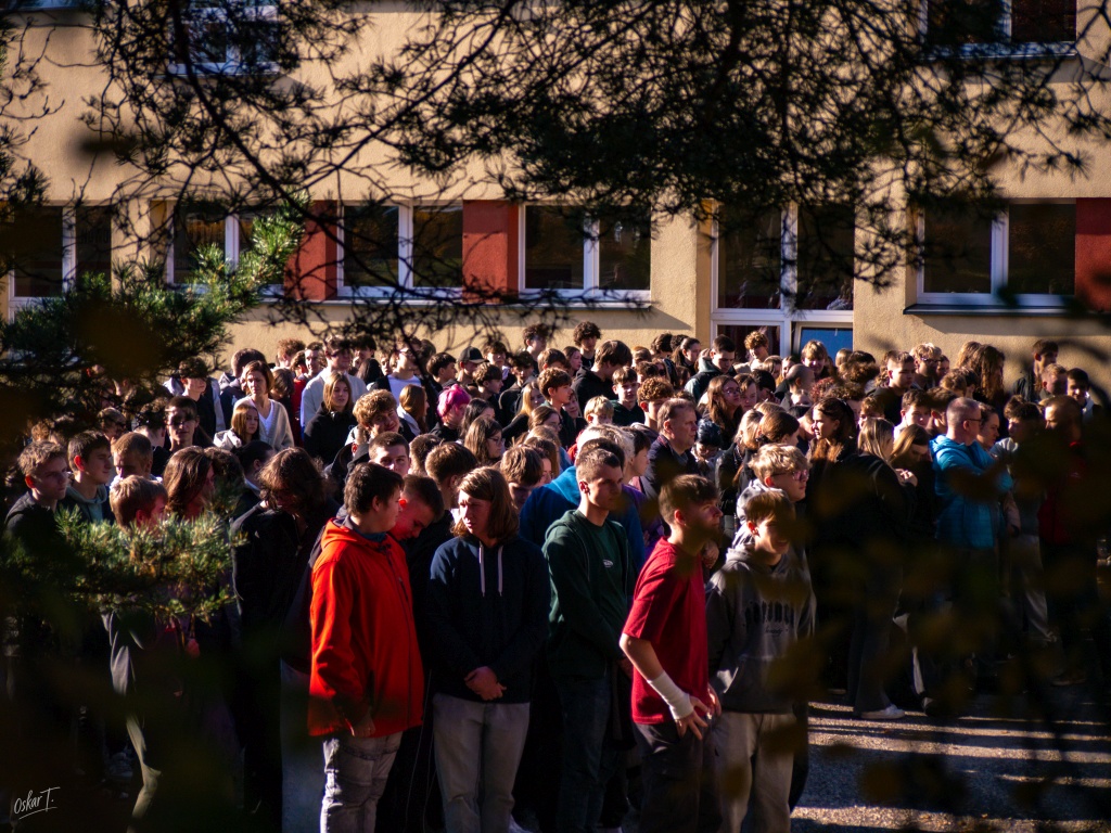 Po raz kolejny w naszej szkole odbyło się śpiewanie Hymnu Narodowego przez wszystkich uczniów z okazji Narodowego Święta Niepodległości. Miało to miejsce w dniu 7 listopada 2025r. Wszyscy zebrani najpierw wysłuchali apelu który przypomniał nam historyczny moment odzyskania przez Polskę niepodległości. Pani Dyrektor doktor Katarzyna Wróbel w swoim przemówieniu również odniosła się do tego wydarzenia z naszej historii a dokładnie o godzinie 11.11 cała społeczność szkolna odśpiewała Hymn Narodowy tak jak miało to również miejsce w wielu szkołach w całej Polsce.