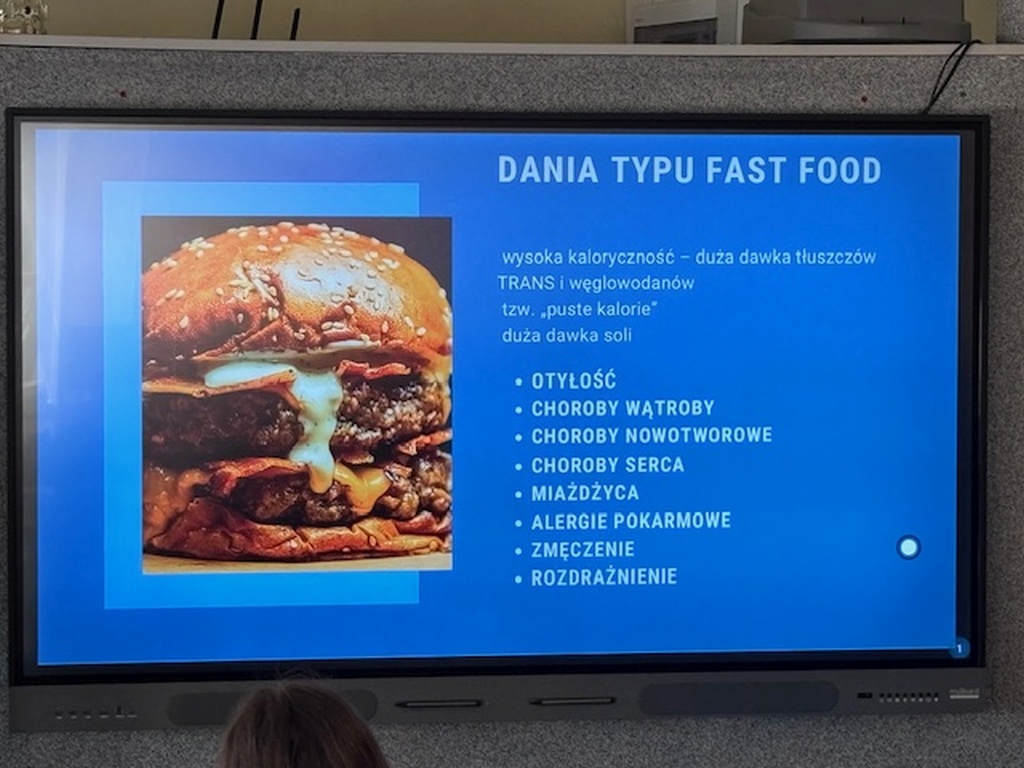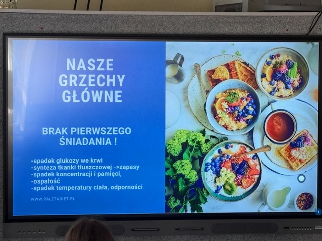 Młodzież poznała rodzaje zaburzeń odżywiania, przyczyny tych zaburzeń oraz wynikające z nich skutki zdrowotne. Pani dietetyk wspominała również o naszych grzechach żywieniowy, zdrowych przekąskach oraz prawidłowo skomponowanym talerzu.