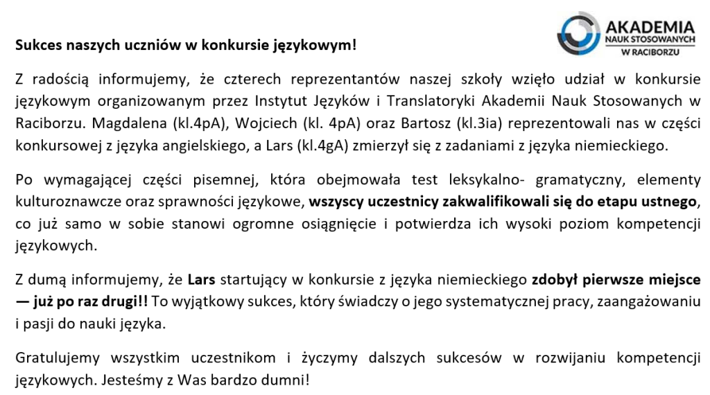 Sukces naszych uczniów w konkursie językowym