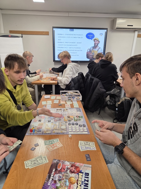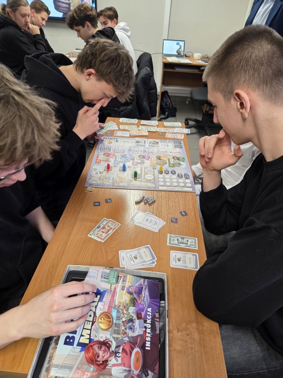 Uczniowie uczestniczyli w grze edukacyjnej pod czujnym okiem jej twórcy dr. hab. Mateusza Lewandowskiego, prof.UJ w Krakowie. W Urzędzie Pracy ciepło powitała nas pani Beata Zelent– Bieniek – koordynatorka projektu. Informatycy ZSB w Rybniku podjęli wyzwanie, z zaangażowaniem otwierali restauracje, brali kredyty, spłacali je, badali rynek pracy, bankrutowali i od nowa tworzyli swoją firmę. Bardzo dziękujemy za zaproszenie na te niezwykle interesujące zajęcia. Na pewno nabyte umiejętności wykorzystamy przy planowaniu naszego rozwoju zawodowego.