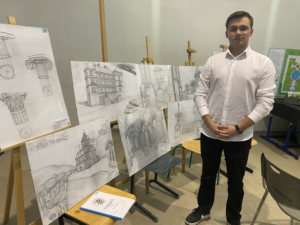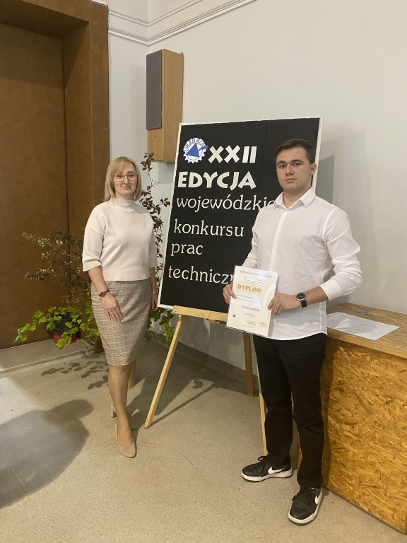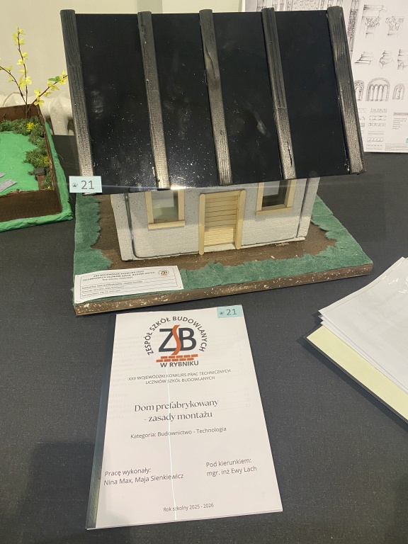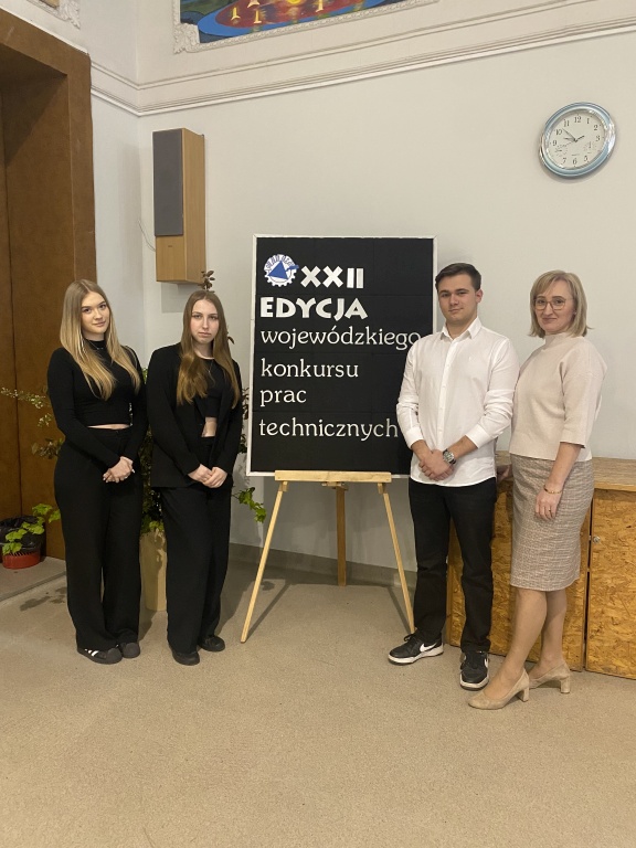 23 kwietnia 2026 r. nastąpiło rozstrzygnięcie i wręczenie nagród XXII edycji Wojewódzkiego Konkursu Prac Technicznych dla Uczniów Szkół Budowlanych. Naszą szkołę reprezentowały Nina Max i Maja Sienkiewicz z klasy 3 bA oraz Ksawier Koleczko z klasy 5 bA. Jak co roku poziom prac był bardzo zróżnicowany, w konkursie wzięło udział 10 szkół z województwa. Miło nam ogłosić, że praca pt. „Style architektoniczne” Ksawiera uzyskała wyróżnienie w swojej kategorii. Promotorem prac była p. Ewa Lach.