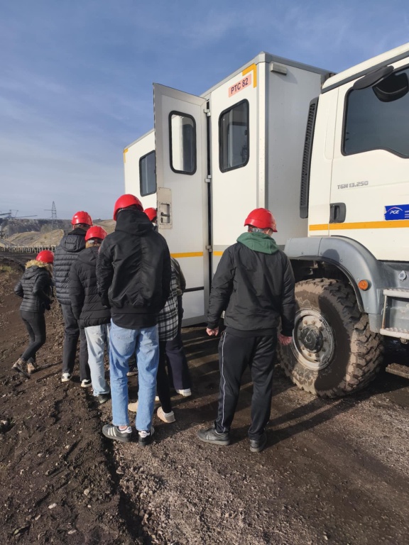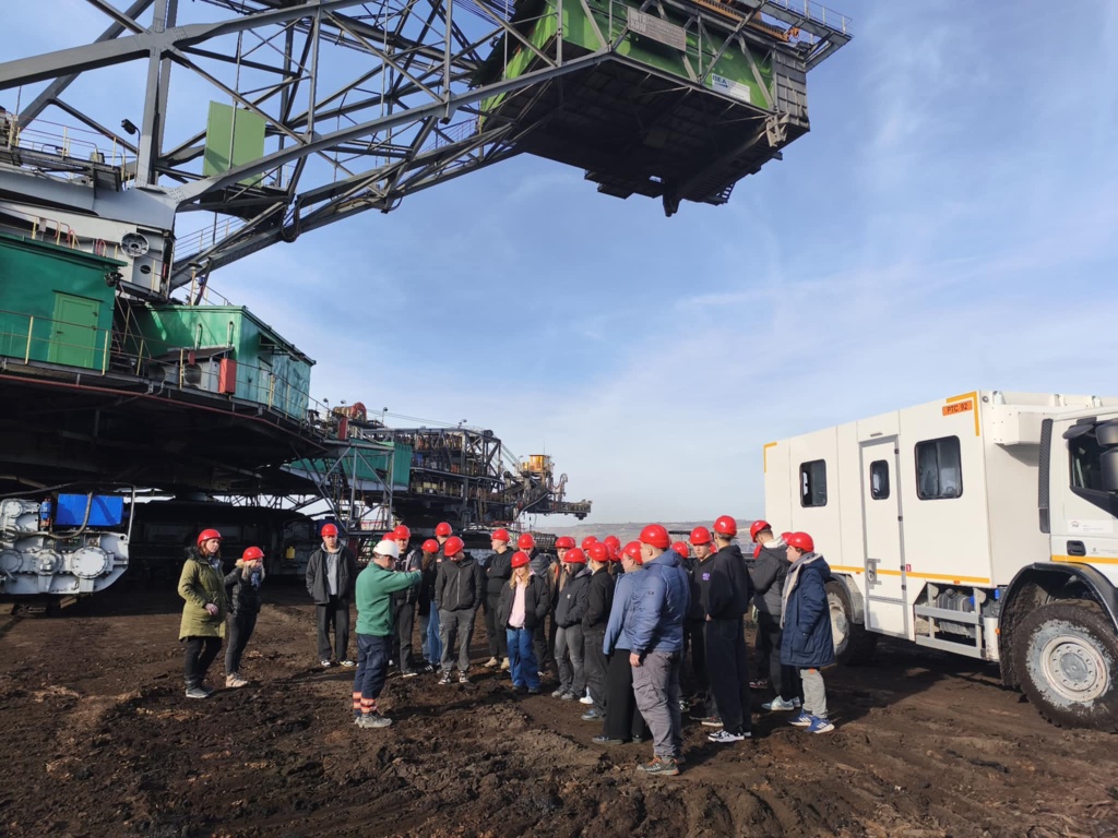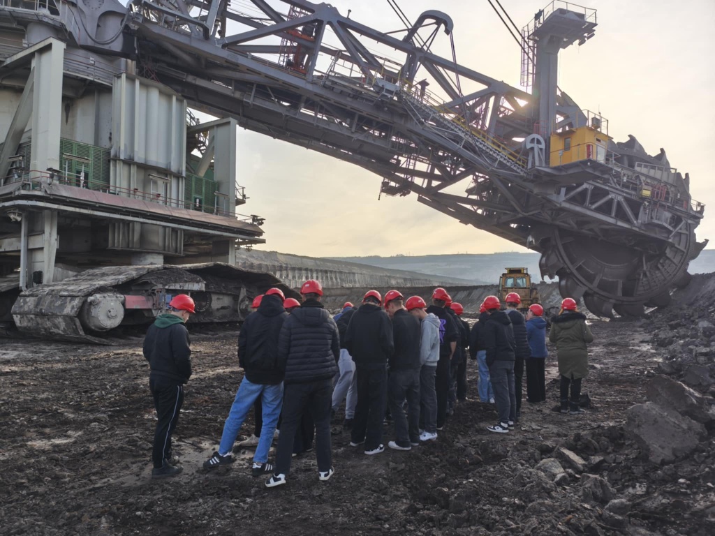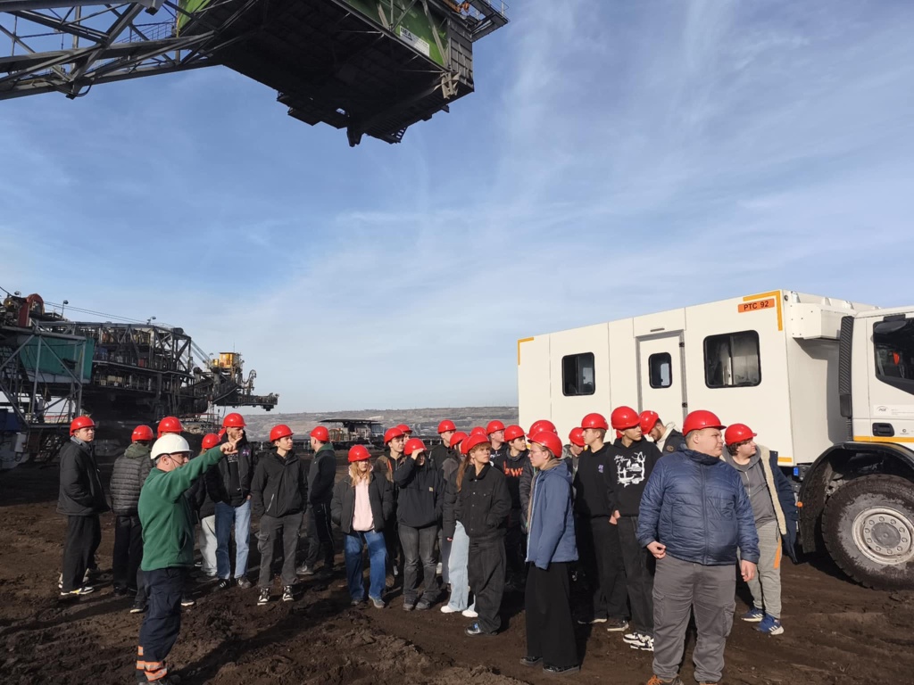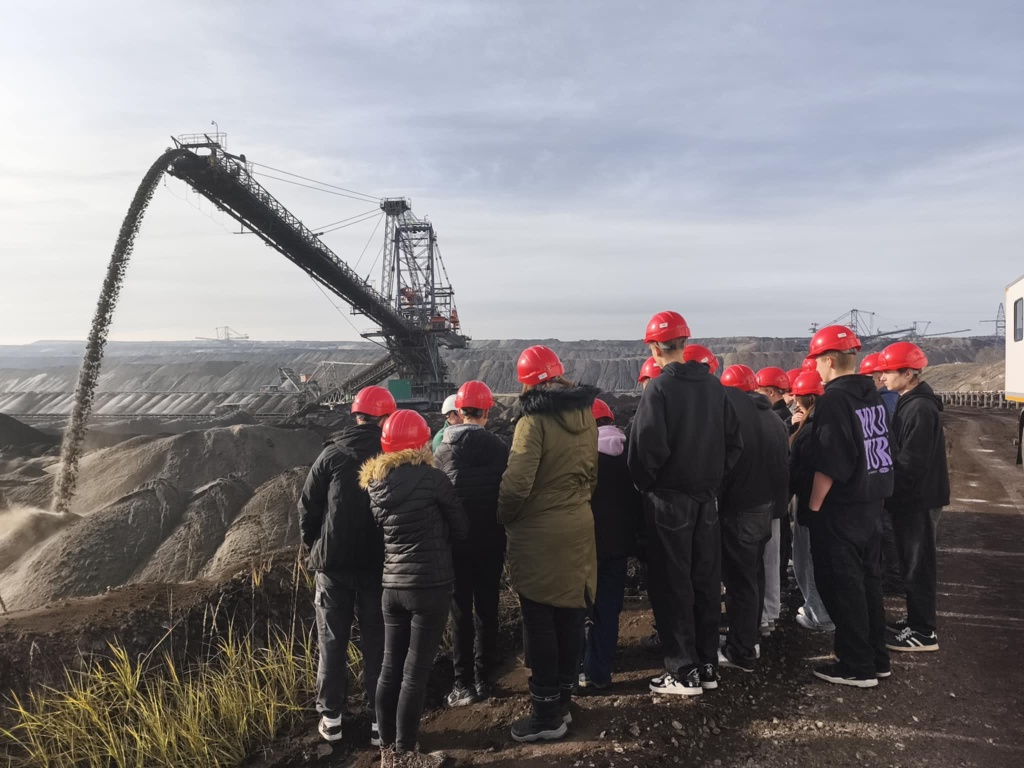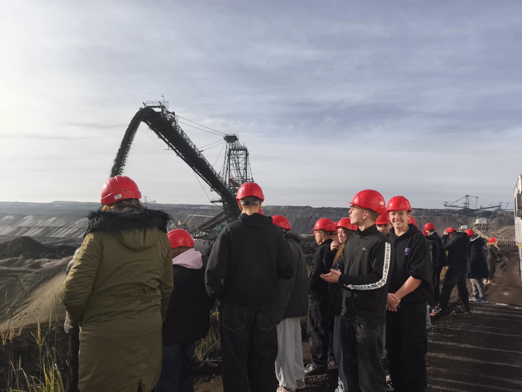 W czwartek 13.11.2025r. uczniowie naszej szkoły wraz z opiekunami mieli okazję zwiedzić kopalnię węgla brunatnego w Bełchatowie To już czwarta grupa, która uczestniczyła w lekcji geografii i geologii w terenie. Tym razem byli to uczniowie klas 4bA oraz 3gA, którzy z wielkim zainteresowaniem wysłuchali prezentacji dotyczącej historii jednej z największej kopalni odkrywkowej w Europie, a także szczegółów dotyczących jej działalności, wydobycia i planów co do jej dalszego funkcjonowania. Dowiedzieliśmy się, że podczas prac prowadzonych na terenie kopalni natrafiono kilkakrotnie na szczątki mamutów m.in.: fragmentów ciosów, kości lub żuchwy, ale najbardziej interesujące okazało się znalezienie czaszki mamuta. Jednak najciekawszym i najbardziej emocjonującym przeżyciem był przejazd autami do wyrobiska, gdzie mogliśmy zobaczyć monstrualnej wielkości maszyny wydobywające i transportujące węgiel. Przewodnik opowiedział nam o procesie wydobycia węgla, jego transportu oraz jego dalszym przeznaczeniu. Dowiedzieliśmy się, że ta największa dziura w ziemi na terenie Europy jest widoczna ze stacji kosmicznej 354 km nad ziemią. Będąc na terenie kopalni mieliśmy wrażenie, że znajdujemy się na planie filmu science-fiction lub zwiedzamy powierzchnię innej planety. Pełni wrażeń i naładowani pozytywną energią wróciliśmy do Rybnika.